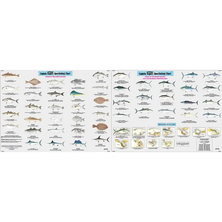 This fish identification chart shows you what fish you just caught. It explains the structure of the fish and special quailfications of a fish, as well as an area that teachs you how to clean and gut your fish.