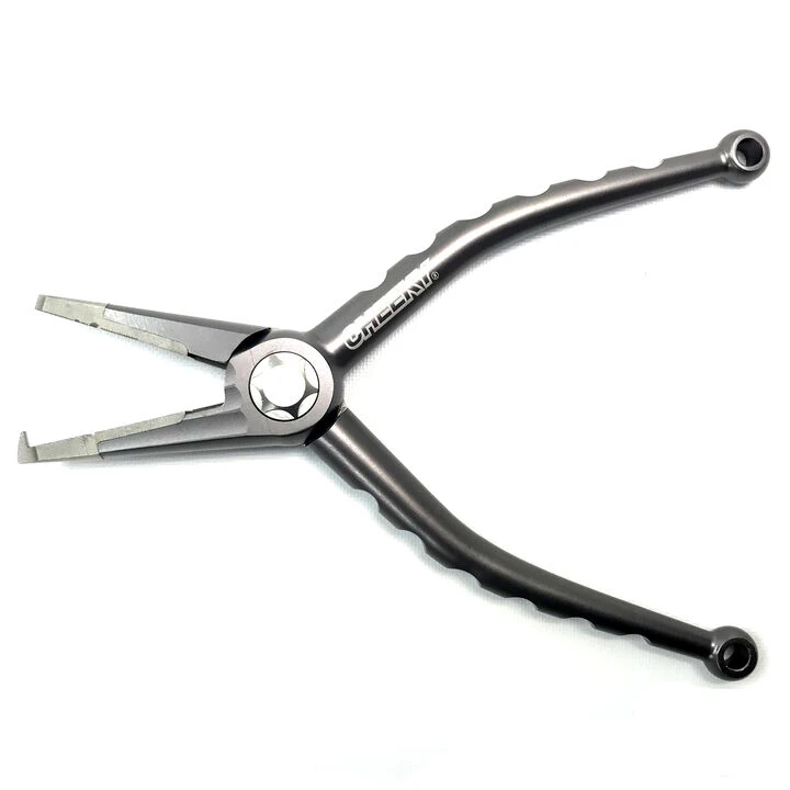 Featuring extended ribbed handles for no-slip grip, rugged and torque-dispersing stainless steel tips with knot tensioner / split ring opener, and replaceable HSS cutters that slice through braided line like a warm knife through butter, the 750 Pliers are sure to change your angling game.