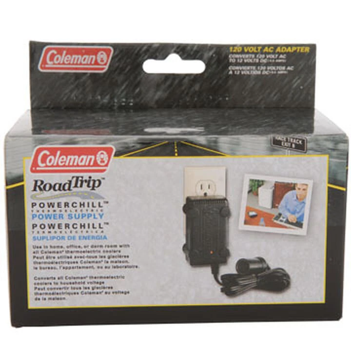 The Coleman® Thermoelectric Cooler Power Supply converts Coleman thermoelectric coolers to household voltage.