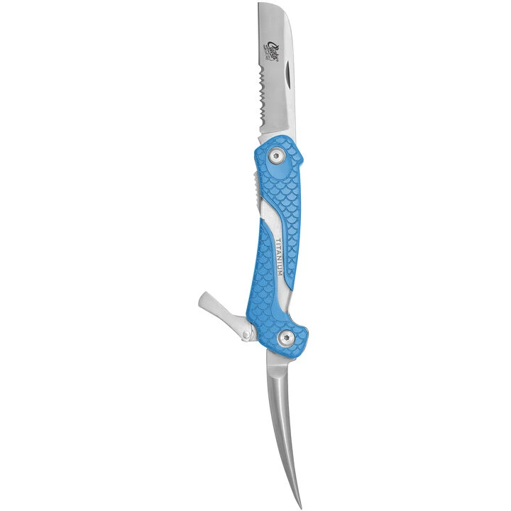 The Cuda® folding knife features a rigid, lockable marlin spike that is great for loosening knots. The cutting blade is partially serrated and constructed of Titanium Bonded German 4116 stainless steel so it will stay sharper for a longer period of time and has increased corrosion-resistance.
