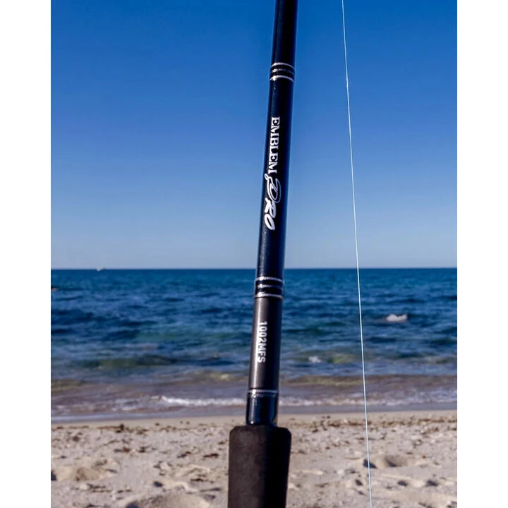 Emblem Pro Surf Rods are constructed with a lightweight graphite blank construction complete with EVA handle and an ergonomic hooded reel seat for all day comfort. Custom split grips allow for maximum comfort and cast ability while still reducing overall weight of the rod. The rod features a two piece 50/50 split design for easy packing and storage when traveling to the water.