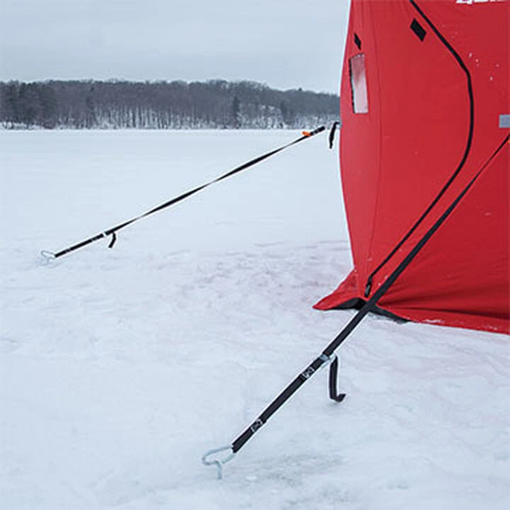 The Deluxe Strap Tie Down Combo Kit contains two Eskimo® Ice Anchors, and two cam straps for strong, secure, durable tie-downs of your fishing shelter in the elements.