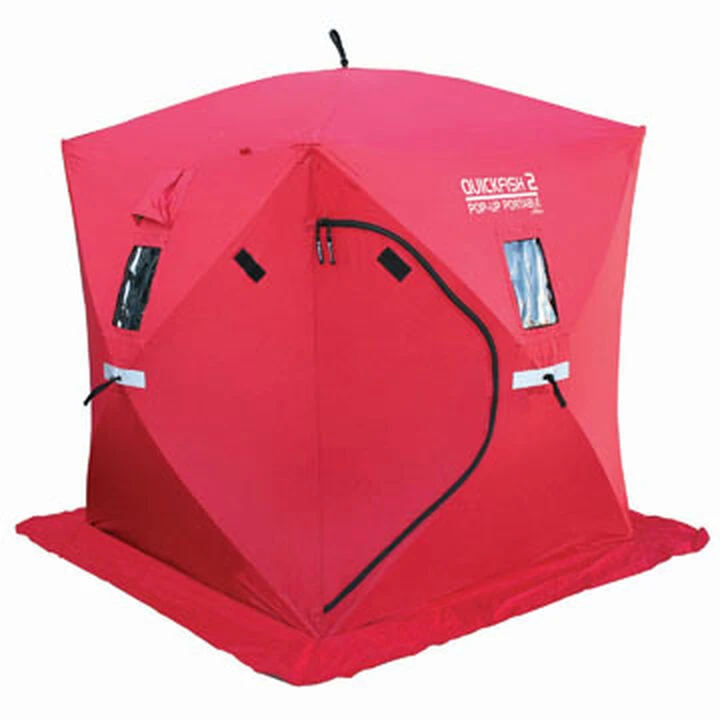 Perfect for two people, the QuickFish2 has 25 square feet of fishable area, mesh storage pockets to keep your essential ice fishing gear, and an extra long skirt to help eliminate drafts on those cold winter days.