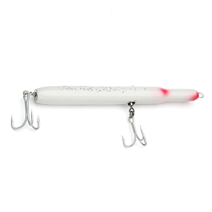 The desired action is one of no action but the waters current. A slow, steady retriever at or just below the surface will produce a symmetrical V-wake that will obtain the desired result. Strikes are much less dramatic than on other lures, so pay attention and concentrate on the plug at all times. Step up the tempo considerably when Bluefish are the target.