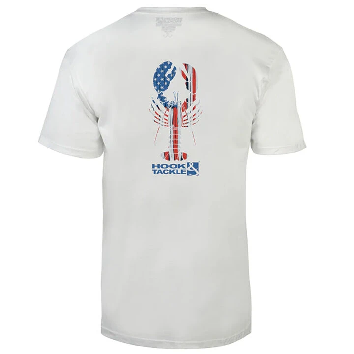 Hook & Tackle® Men’s American Lobster T-Shirt features a lobster painted in red, white and blue on the back of the shirt. This soft-touch Premium Cotton and Cotton blend fishing t-shirt offers a comfortable fit, feel and durability while retaining its shape and elasticity. The shirt also features a front chest print of the Hook & Tackle® logo.