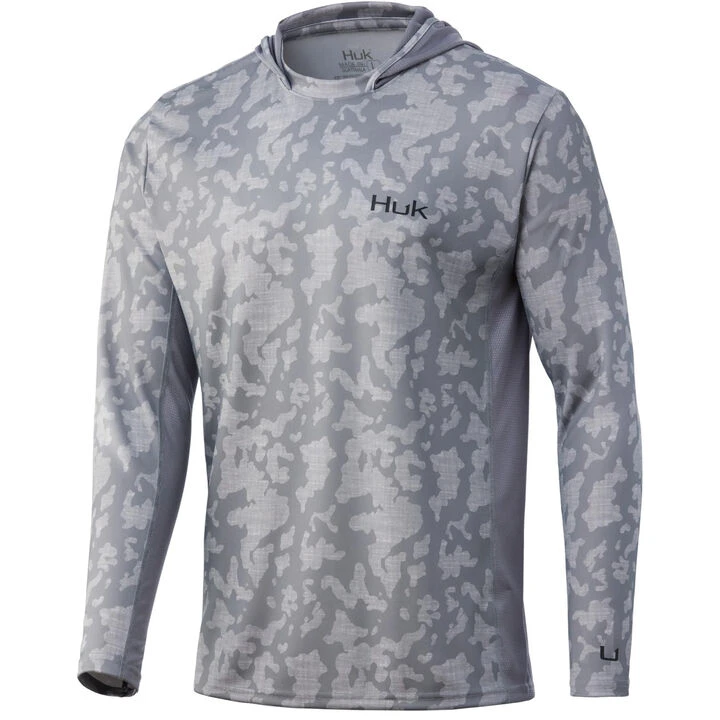 Huk® Men’s ICON X Running Lakes Hoodie is the most technically advanced performance fishing shirt designed for hardcore anglers. This breathable material spreads moisture over a larger surface area, creating a rapid drying effect that cools the body after coming into contact with perspiration. The synthetic fibers allow air to pass through the shirt and contain a hydrophobic coating that transports sweat to drier areas, away from the skin.