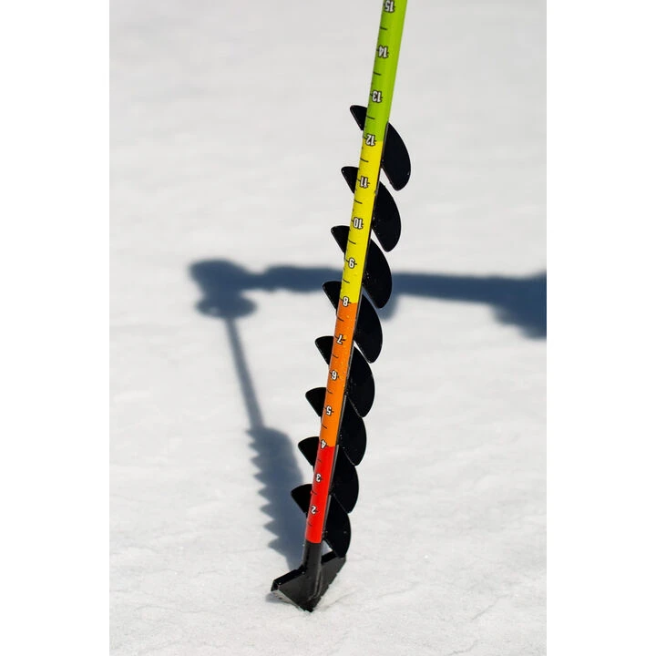 - 2.5″ ice drill designed to quickly, safely and effectively measure depth of ice