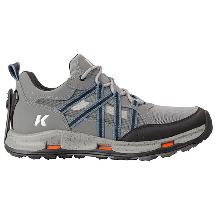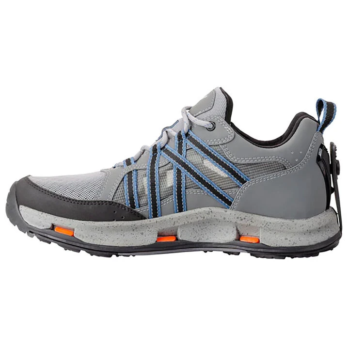 Korkers® Men’s All Axis™ Shoe features breathable, vented side panels that provide comfort for all warm weather pursuits. The combination of a covered toe and underfoot sole plate, provides added protection from rocks and uneven terrain.
