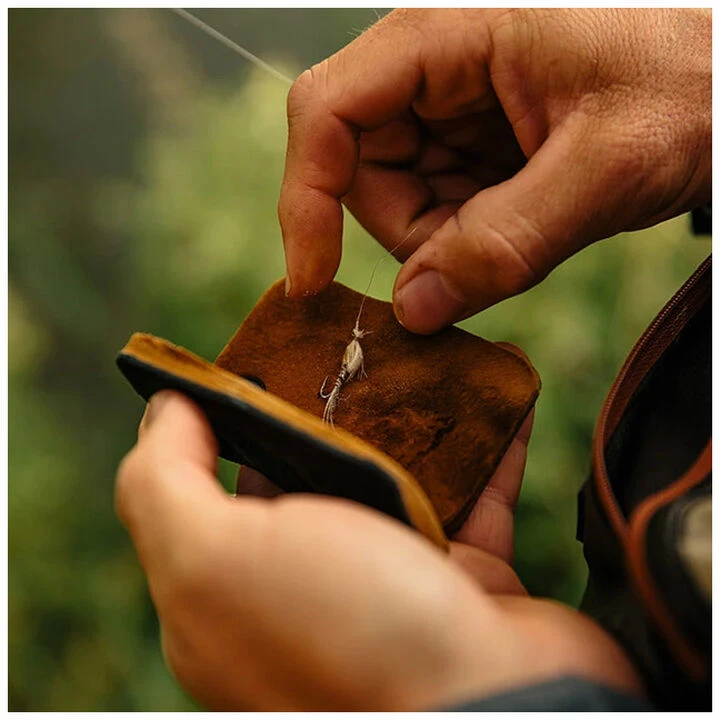 Amadou is primarily composed of a mushroom (Fomes fomentarius), and its primary purpose is taking soggy, water-logged, good-for-nothing dry flies and getting them ready to fish again. A simple squeeze between the two pads of this magical material sucks out water from a drowned fly, restoring its ability to float.