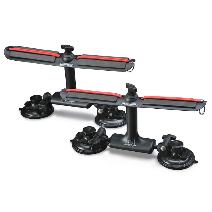 RodMounts® Suction mounting system safely and securely mounts to the exterior of your vehicle. Suction mounts can adhere to any smooth and non-porous surface. Four independent lever-lock suction mounts adhere to glass, aluminum, steel, plastic, fiberglass and carbon-fiber.