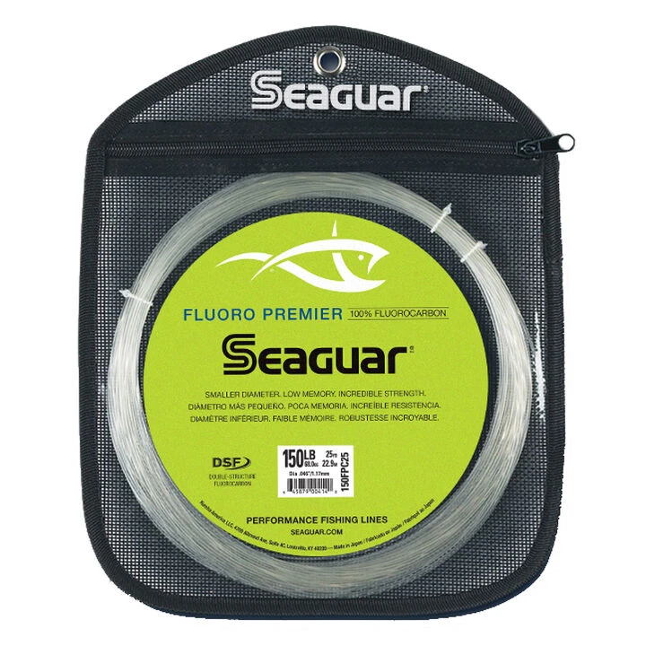 Featuring smaller diameters with incredible knot and tensile strength, Seaguar® Fluoro Premier Big Game is the perfect shock leader.