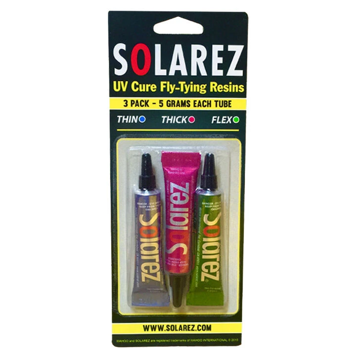 The Solarez® Fly-Tie UV Resins instantly cure with a hard finish with sunlight or UV light. Each come in a 5g. tube.