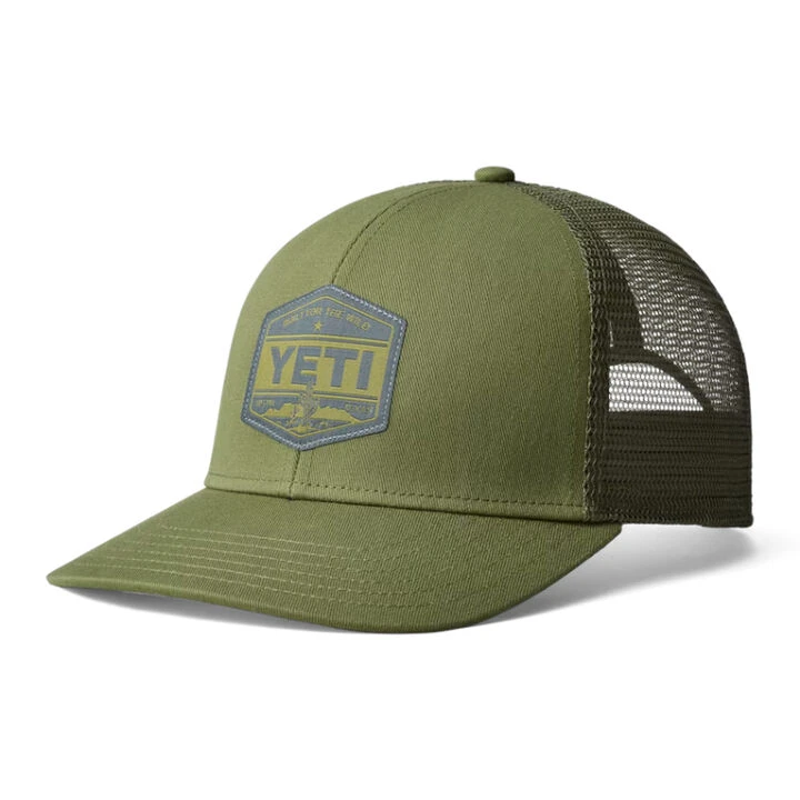 A hat that just wants to be outside. This YETI® trucker is made from Cotton and Recycled Polyester and features a Bureo® brim which is derived from NetPlus® – a material made from 100% Recycled fishing nets to help reduce plastic pollution in our oceans.